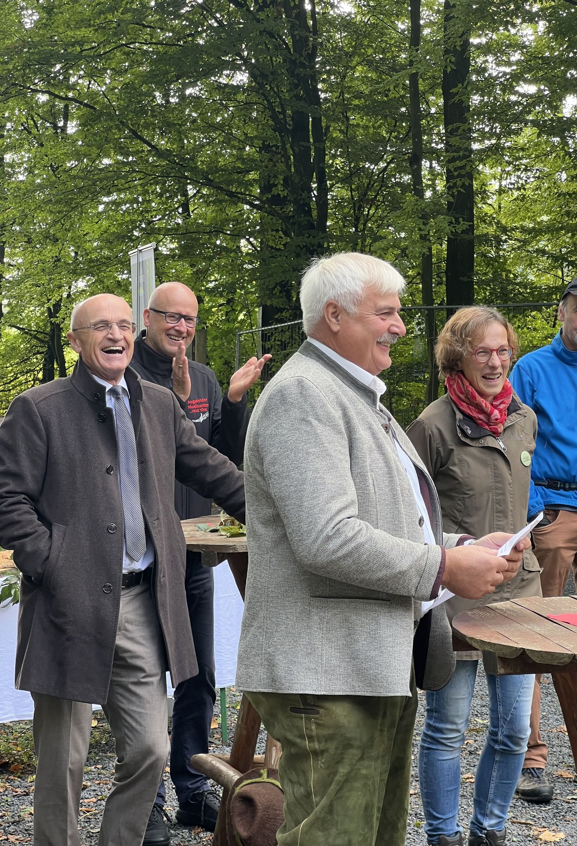 Knetzgaus Bürgermeister Paulus und Oberaurachs 2. Bürgermeister Albert luden in ihren Grußworten zum bewussten Naturerlebnis ein - die Ruhe und Natur des Steigerwalds als Gegenpol zu Touristenmassen in Bamberg oder Würzburg.