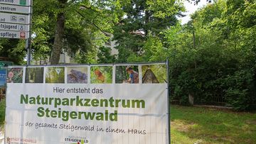 JANUAR 2025 - Während viele Vorbereitungen, Termine, Besprechungen und Planungen noch im Hintergrund stattfinden, weist nun schon einmal ein Banner in der Schwarzenberger Straße 26 in Scheinfeld darauf hin: Hier entsteht das Naturparkzentrum Steigerwald.